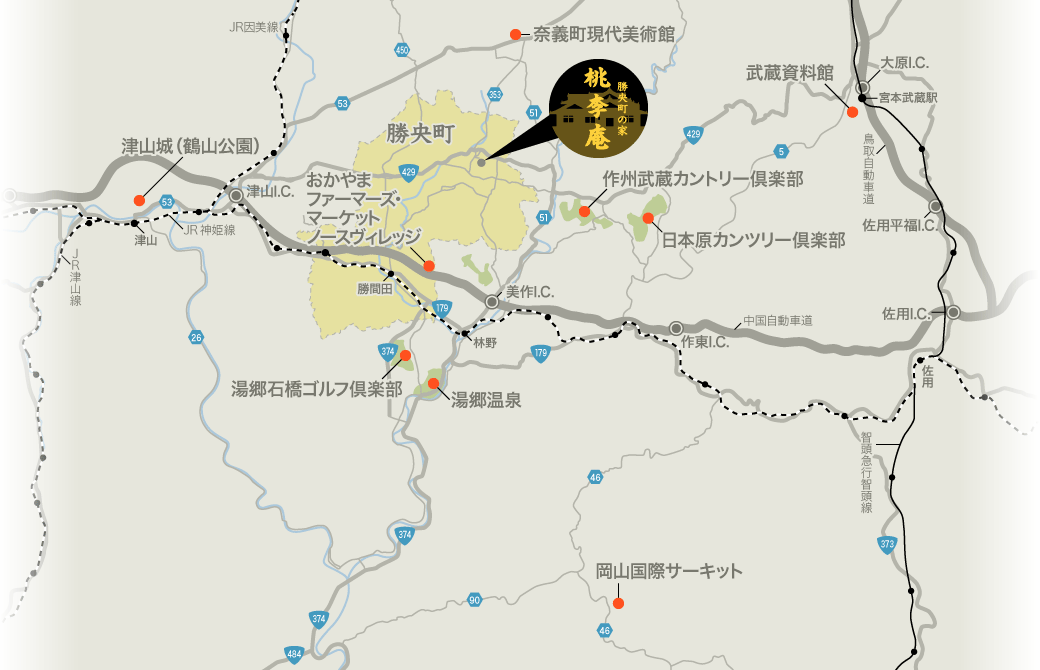 勝央町にある交流体験型農業公園。地元農家で作られた野菜や食品をその場で味わったり手にすることはもちろん、約20haという広大な敷地内では、農作物の収穫体験、バーベキューやアスレチック、乗馬や動物とのふれあいが楽しめます。また、定期的にコンサートも開催されています。宿泊も可能。