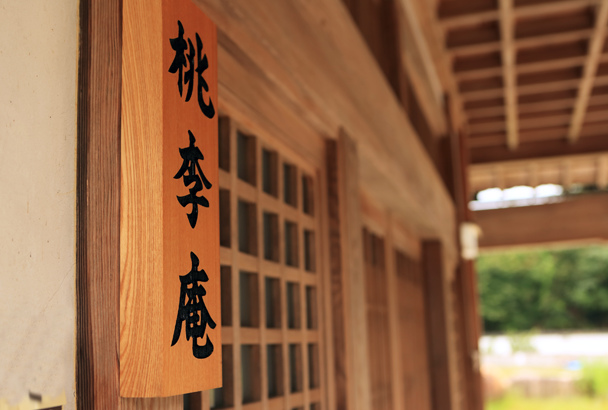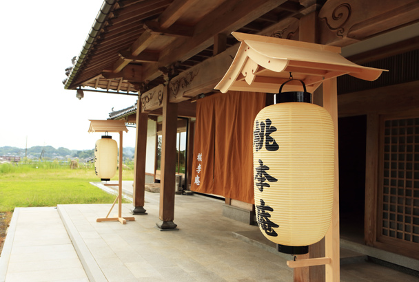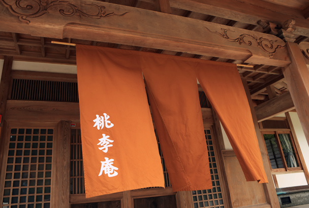 お客さまをお迎えするのは桃李庵自慢の玄関。扉をくぐると、そこには土間から続く広い空間が。ほの明るくあたりを照らす夜の提灯も、ぜひご覧ください。